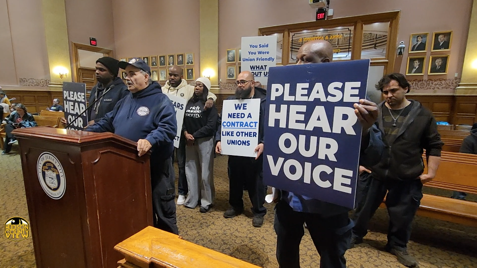 The Jersey City Public Employees Local 245 members brought their ongoing contract woes to last night’s city council meeting, just nine days after they picketed outside City Hall for being without a contract for six years.