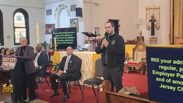 Jersey City Together hosted Mayor James Solomon at a packed church meeting last night to advocate for enhanced school funding and affordable housing regulation, both of which he pledged on the campaign trail.