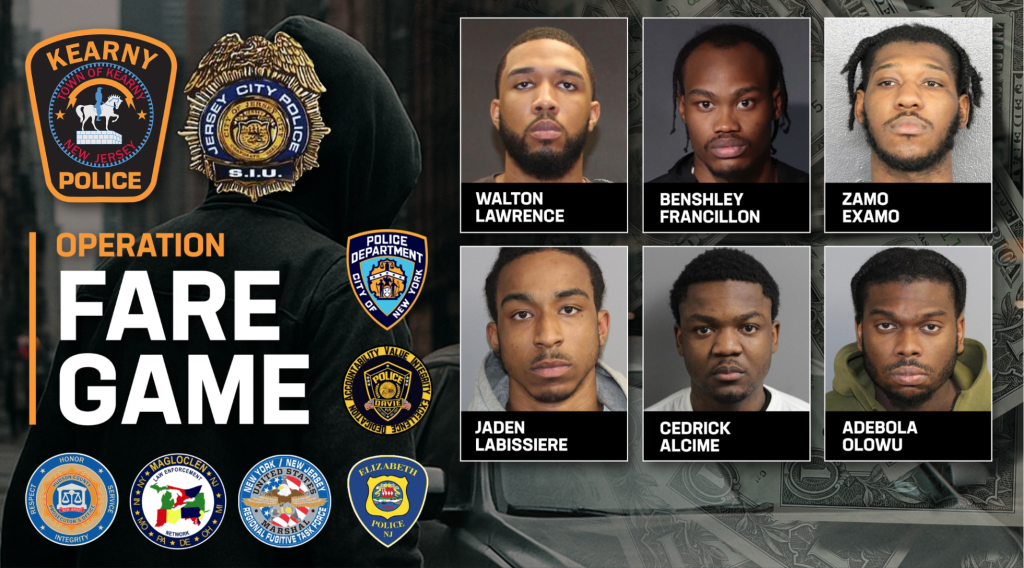 A major joint investigation led by the Kearny Police Department and the Jersey City Police Department’s Special Investigation Unit has resulted in the arrest of six men connected to an organized fraud ring that targeted rideshare drivers across multiple states.