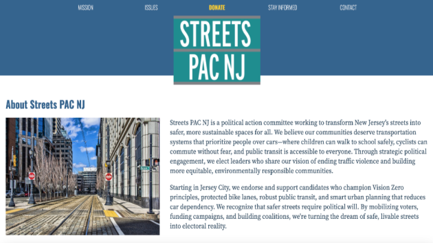 A new political action committee, StreetsPAC NJ, is seeking to champion active transportation and Vision Zero initiatives statewide and will be involved with the Jersey City municipal elections, Executive Director Kevin Bing announced.