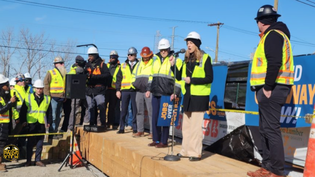 Gov. Mikie Sherrill (D) and U.S. Senate Minority Leader Chuck Schumer (D-NY) joined LIUNA union members protesting President Donald Trump’s (R) disruption of the Gateway project this morning at a project site in North Bergen.