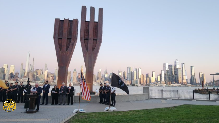 The Township of Weehawken held their 24th annual 9/11 remembrance ceremony on the Hudson River Walk by their memorial: two trident-shaped beams that served as supports for the Twin Towers.